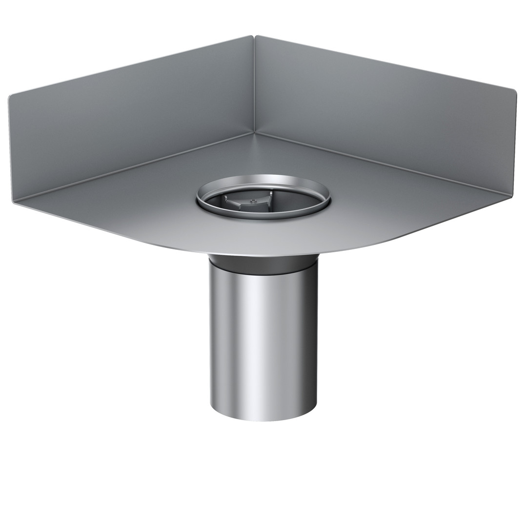 ACO Balkondirektablauf mit Eck-Wandaufk./DN100/V2A Höhe 200 mm/Wandabstand 30mm mit Kleberflansch/mit Glocke