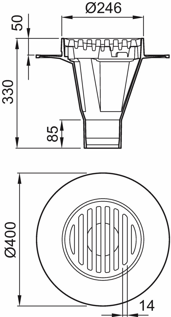 Bodenabläufe geprüft gem. DIN EN 1253, mit Anstrich Baustoffklasse A1, für Anschluss an SML-Rohr geprüft, gem. DIN 19522/DIN EN 877, mit Sickeröffnungen, mit Eimer: PE hart, Abflusswert: 4 l/s