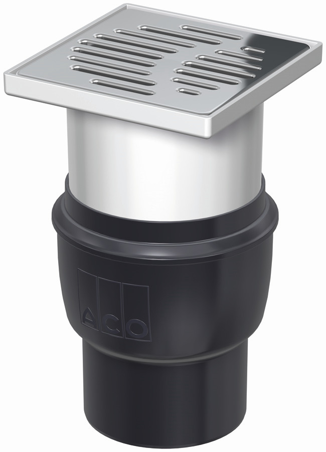 ACO Bodenablauf Komplett DN 100, 90°, senkrecht, ohne Zulauf seitlich, Halterand, Kunststoff