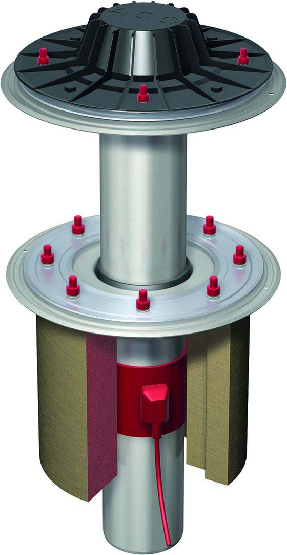 ACO Flachdachablauf Jet Steinwolle beheizt, DN 70, ohne Kiesfangkorb, 230 x 360 mm, 90Grad
