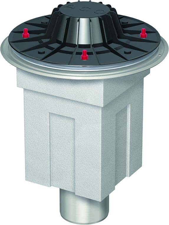 ACO Flachdachablauf Jet ungedämmt, beheizt, DN 100, Edelstahl-Kiesfangkorb, 120 x 260 mm, 90Grad AO12191090