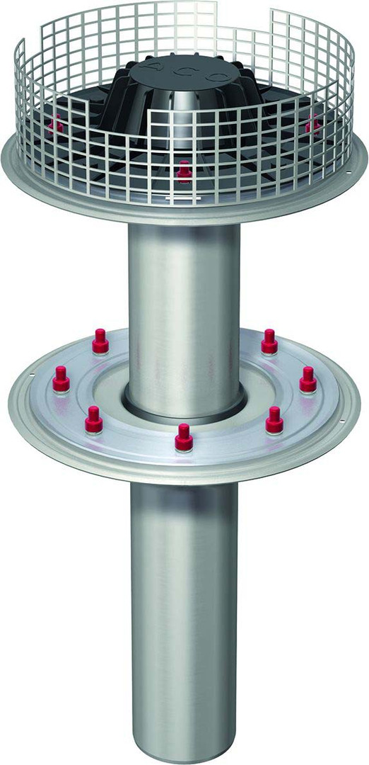 ACO Flachdachablauf Jet ungedämmt, DN 100, Edelstahl-Kiesfangkorb, 120 x 260 mm, 90Grad