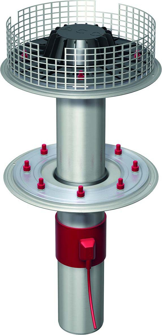 ACO Flachdachablauf Jet ungedämmt, beheizt, DN 100, Edelstahl-Kiesfangkorb, 120 x 260 mm, 90Grad