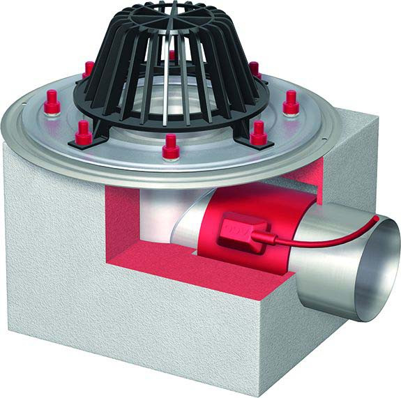 ACO Flachdachablauf Spin V2A DN100 1,5Grad/1-tlg/Kiesf.Kst/Heizung/Styropor