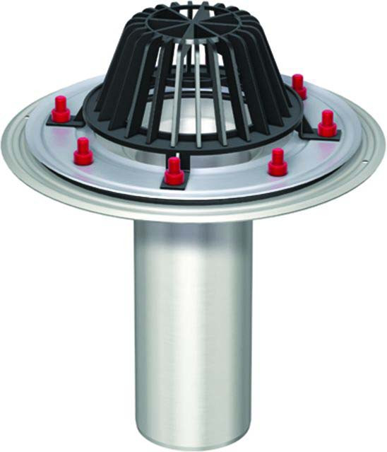 ACO Flachdachablauf Spin V2A DN100 90 Grad/1-tlg/Kiesf. Kst/o.Dichtungsbahn