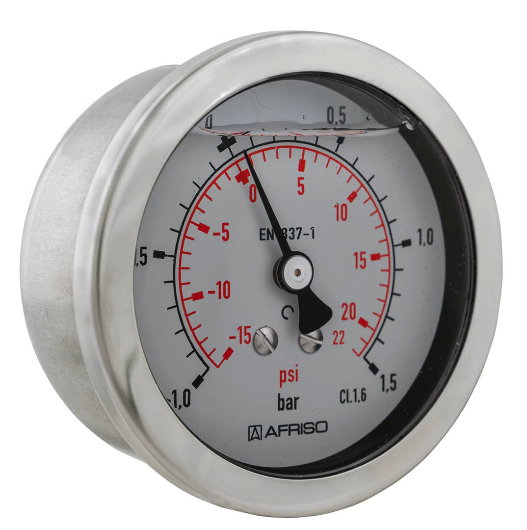 AFRISO Rohrfeder-Glyzerinmanometer RF63Gly 0/1bar G1/4B axial Kl.1,6 D711