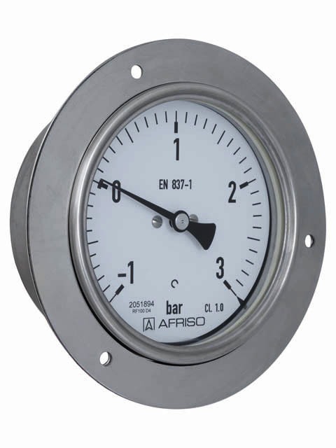 AFRISO Rohrfeder-Industriemanometer RF100I -1/+3bar G1/2B axial exzentrisch Kl.1,0 D431