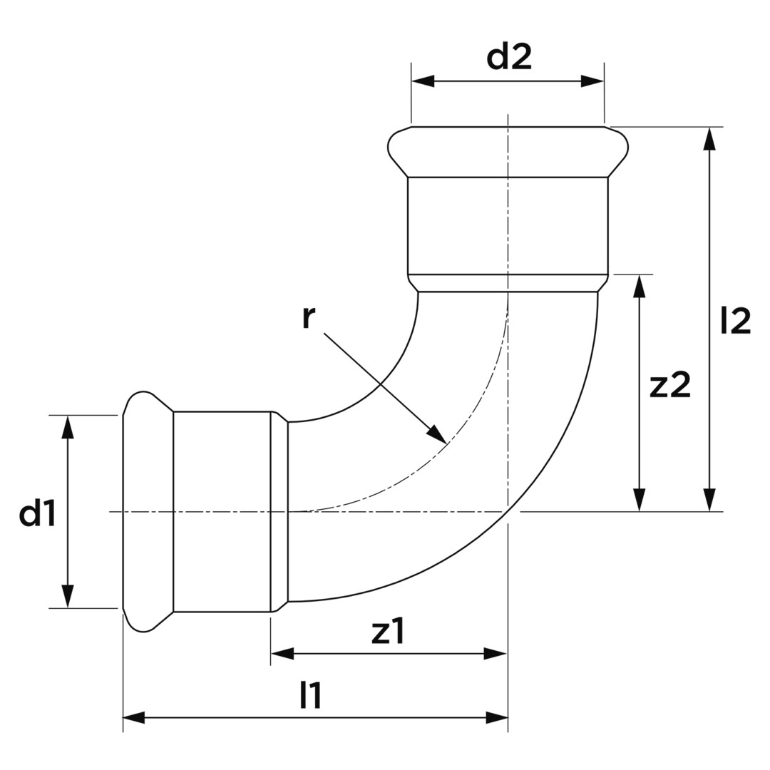 AIPS Bogen VSH XPress C1408 28 mm, C-Stahl, 90Grad. I/I, EPDM-O-Ring SF6201580