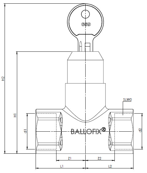 abschließbares Oberteil, T-max. 100°C, PN10, beidseitig mit Innengewinde