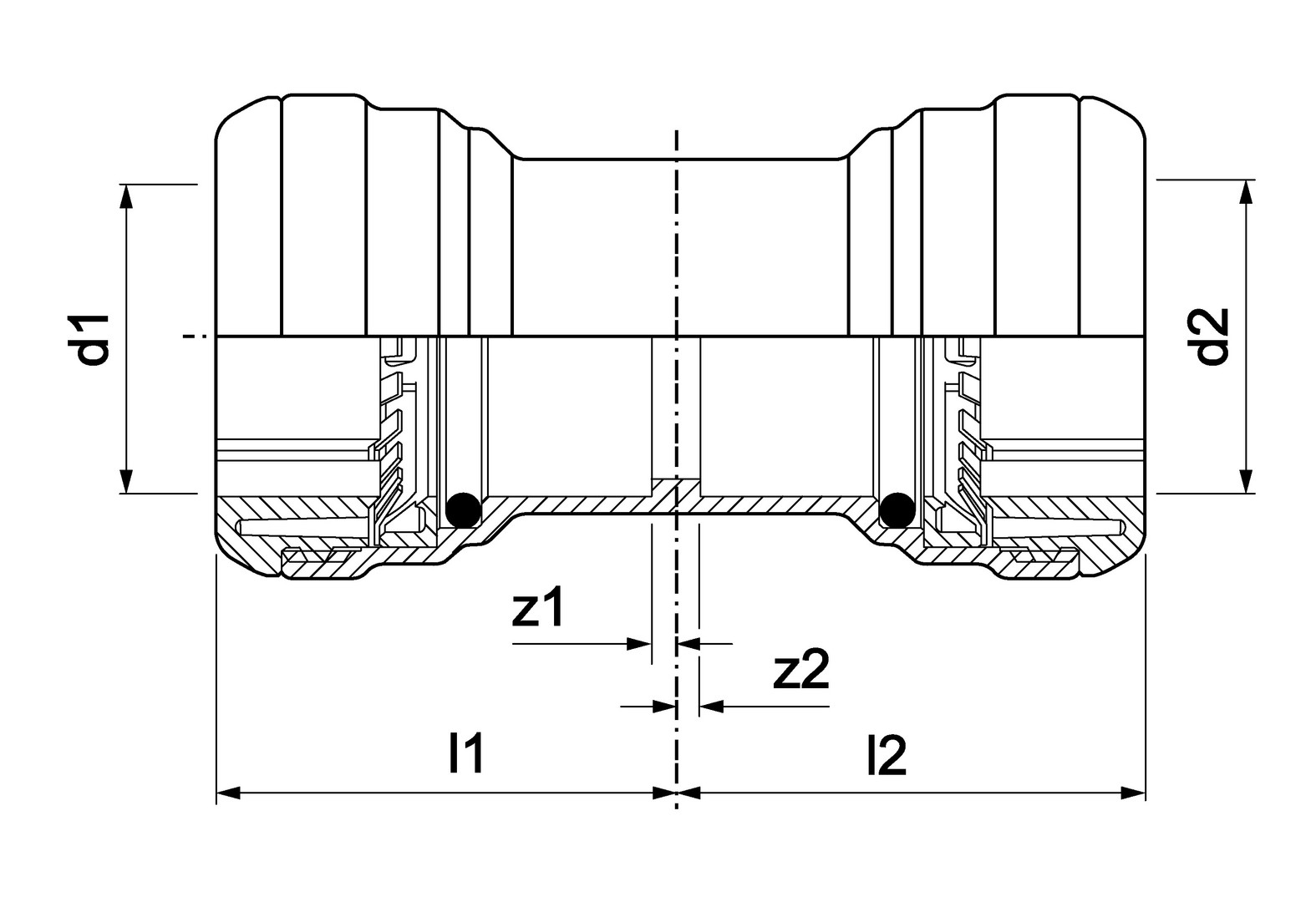 EPDM O-Ring, T-min. -20 °C bis +90 °C, kurzzeitig max. 135 °C, Nennweiten 15 bis 54 mm, Farbleitsystem, DVGW zugelassen für Trinkwasser, dauerhaft dicht, für Kupferrohre nach DIN EN 1057 und DVGW-Arbeitsblatt GW392, Zugfestigkeit R220, R250 und R290