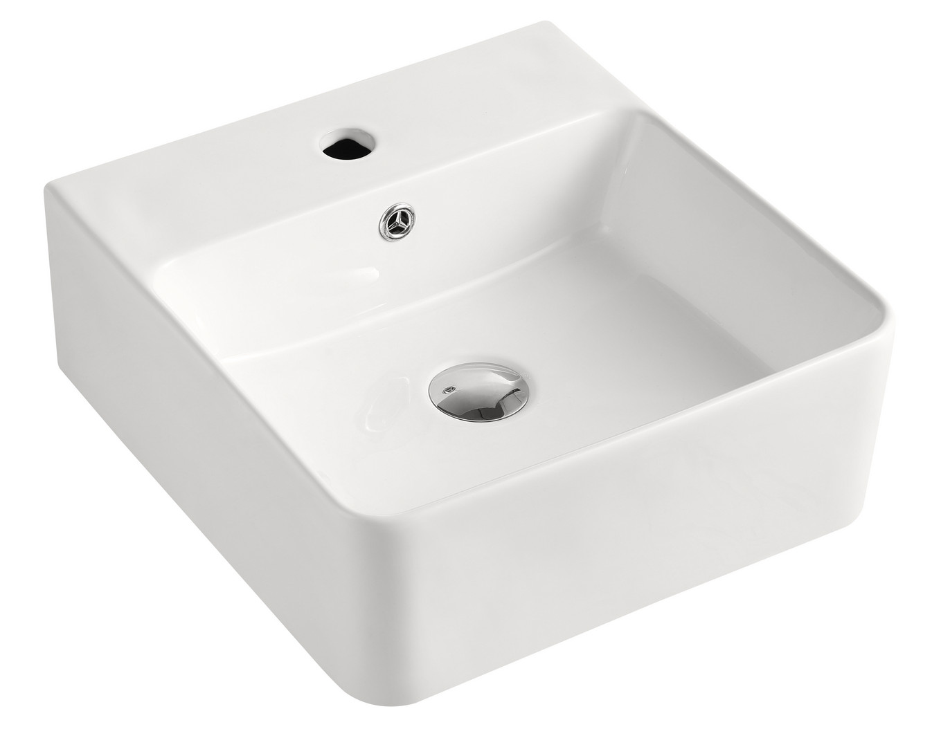 AQVAZONE Aufsatz-Waschtisch AQVA CERAMICA SlimRim 423 x 405 x 155 mm, mit Überlauf/Hahnloch, weiß