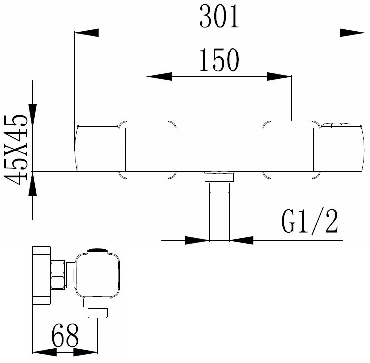 AQVAZONE Brausethermostat AQVA THERM chrom, Brauseabgang 1/2" unten