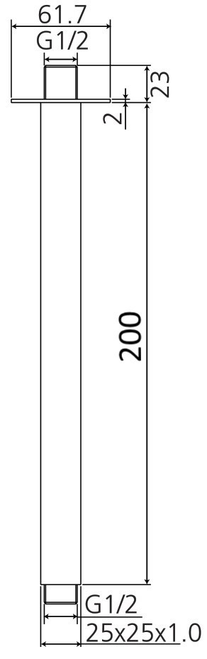 AQVAZONE Decken-Brausearm AQVA DESIGN 1/2" AG x 1/2" AG x 200 mm, eckig, chrom, mit Rosette