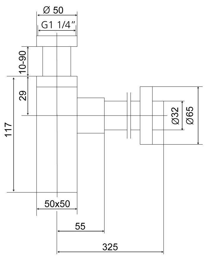 AQVAZONE Flaschengeruchsverschluss chrom, quadratisch, 1 1/4" x 32 mm