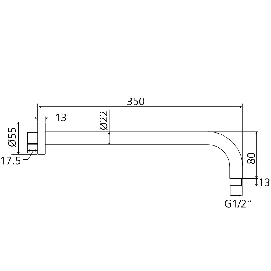 AQVAZONE Wand-Brausearm AQVA DESIGN 1/2" x 1/2" x 350 mm, rund, chrom, mit Rosette