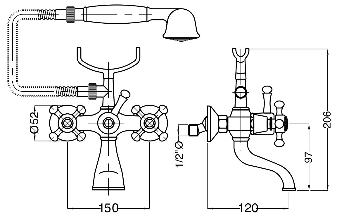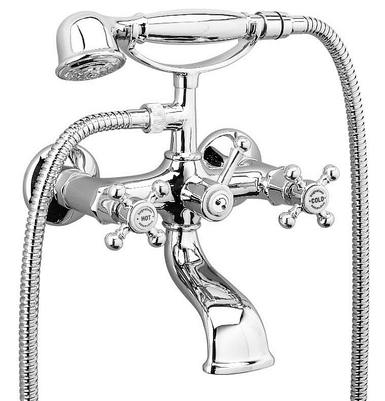 AQVAZONE Wannen-Zweigriff-Armatur AQVA RETRO I chrom, mit Brausegarnitur, Umstellung