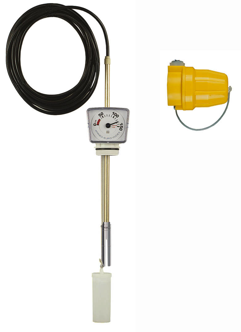 auf Kaltleiterbasis, bestehend aus mechanischem Füllstandmessgerät MT-Profil R, Sonde, Einschraubkörper, Armatur für Wandmontage sowie Kabel zwischen Sonde und Armatur, Druckwasserdicht bis 10 m Wassersäule, geruchsdicht, Grenzwertgeberhülse metallisiert, GWG-Anschlussarmatur Typ 905 gelb ist schlagzäh/stoßfest und formbeständig, Armatur Typ 905 gelb für Wandmontage, Prozessanschluss Einschraubkörper G11/2, Medium Heizöl EL (DIN 51603-1)/Dieselkraftstoff (EN 590)/FAME 100 % in Bioheizöl/FAME 100 % in Biodiesel, Messbereich Füllstand (Tankhöhe) Wendeskala 0/150 und 0/250 cm, Einstellbereich Grenzwertgeber 80 bis 338 mm, Sondenlänge 360 mm, Kabellänge 5 m, Verwendbarkeitsnachweis CE-Kennzeichnung nach EU-BauPVO 305/2011, EU 574/2014, EN 13616:2004