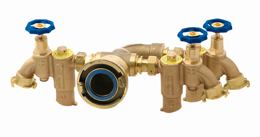 Anbauverteiler für Überflurhydranten mit B-Festkupplung und 3x Systemtrenner BA DN20