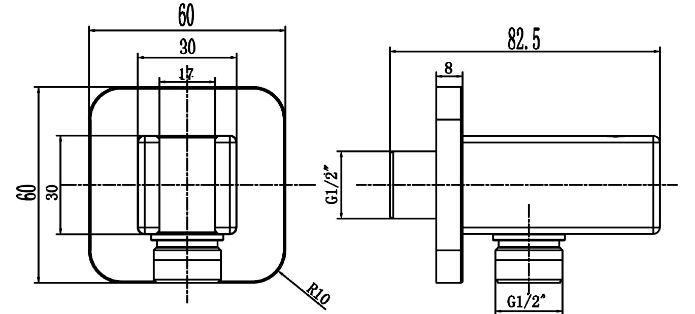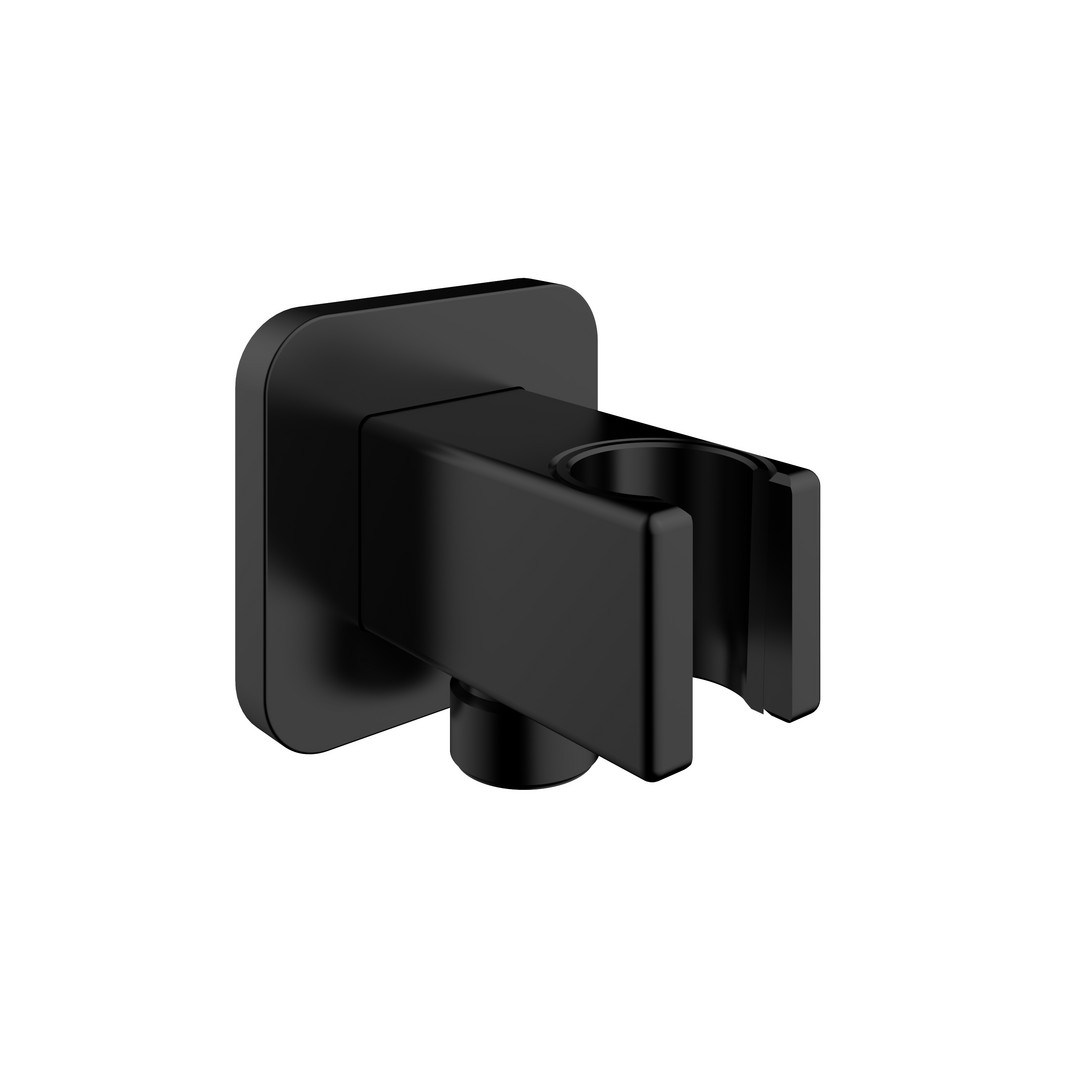 AqvaShower Wandanschlussbogen mit Wandhalter soft edge, 1/2", RV, Messing, mattschwarz