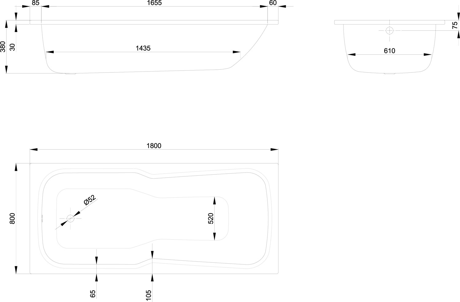 | Durchmesser Ablaufloch | 52 mm |