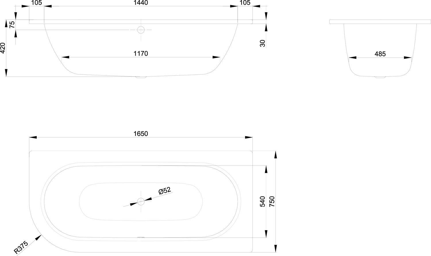| Durchmesser Ablaufloch | 52 mm |