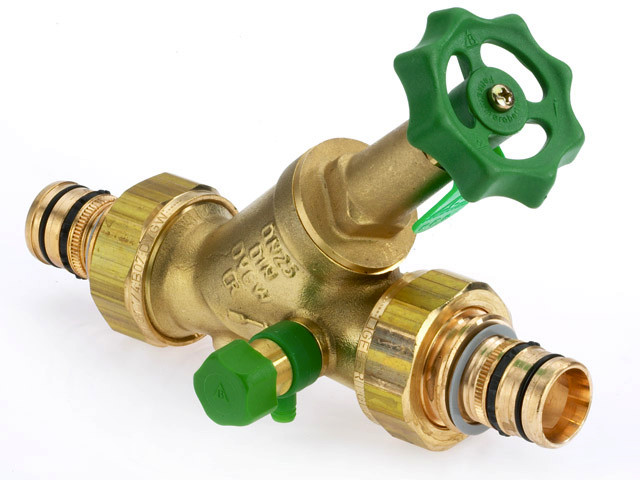 Bender KFR Ventil 1637 Geberit Mepla DN 25, 32 mm, CR-Messing, beidseitiges AG, mit Entleerung BF1637280