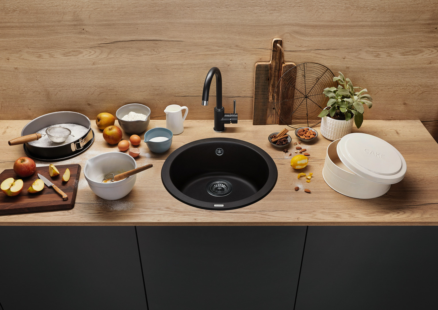 Blanco Becken BLANCORONDO SILGRANIT Ø 45 cm, schwarz, ohne Ablauffernbedienung BL525959
