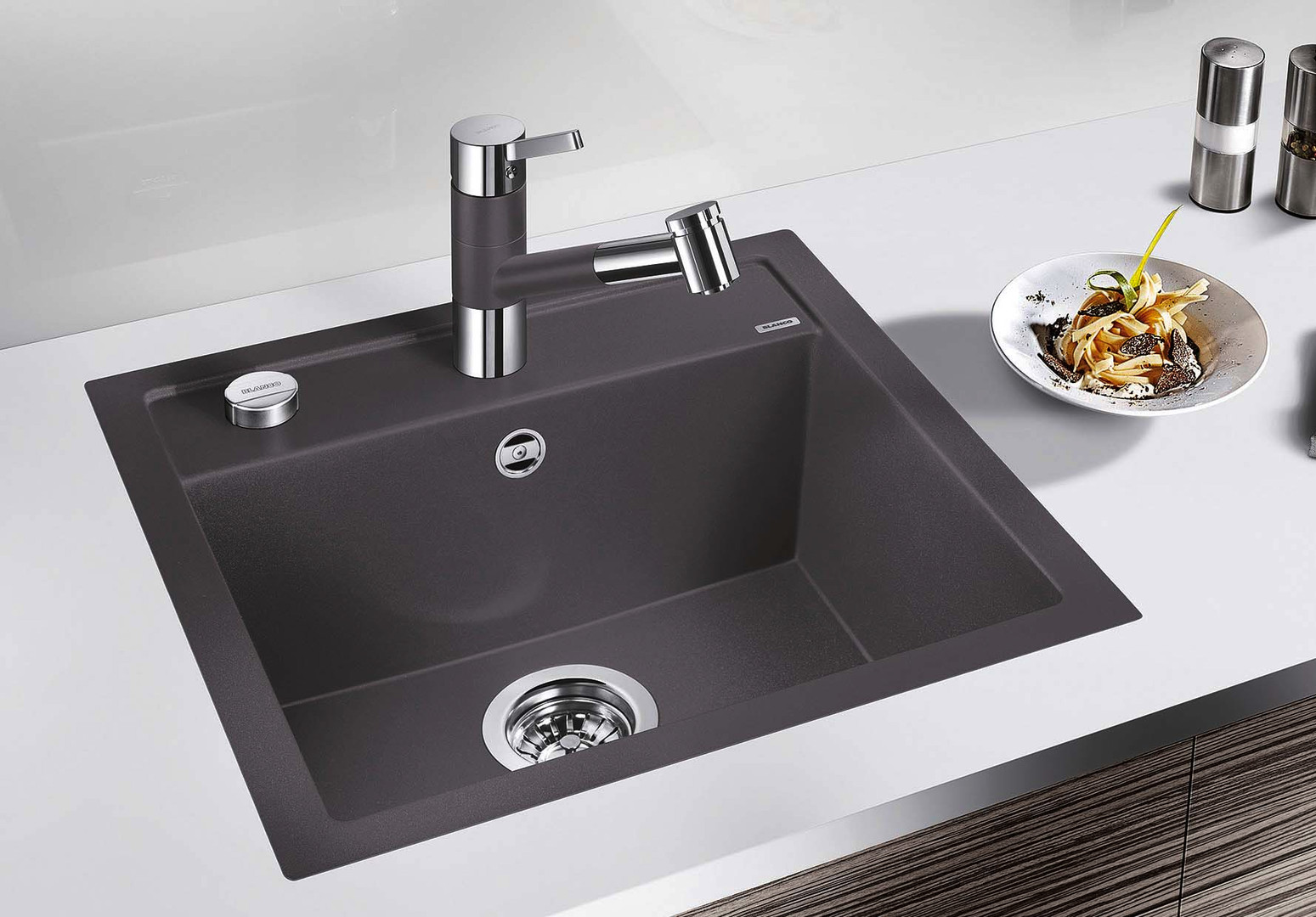 Blanco Becken DALAGO 5-F SILGRANIT 50,5 x 50 cm, anthrazit, mit Ablauffernbedienung BL518530