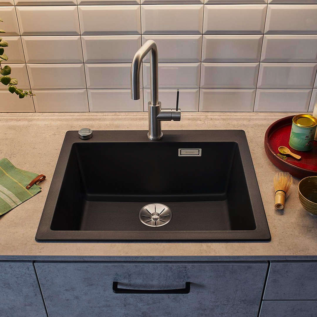 Blanco Becken PLEON 6 SILGRANIT 61,5 x 51 cm, schwarz, mit Ablauffernbedienung BL525954