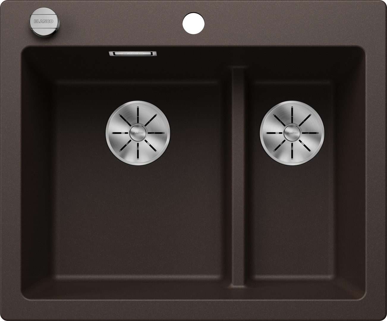 Blanco Becken Pleon 6 Split SILGRANIT 61,5 x 51 cm, PuraDur cafe, reversibel, Ablauffernbedienung mit Drehbetätigung