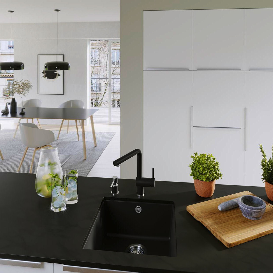 Blanco Becken ROTAN 400-U SILGRANIT 43 x 46 cm, schwarz, ohne Ablauffernbedienung BL526097