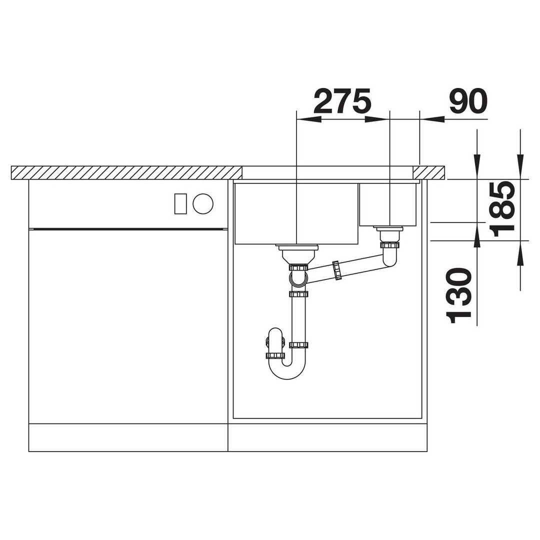 Blanco Becken Subline 350/150-U 56,7 x 45,6 cm, Keramik PuraPlus basalt, Hauptbecken links, ohne Ablauffernbedienung BL523746