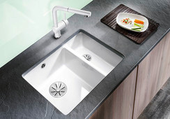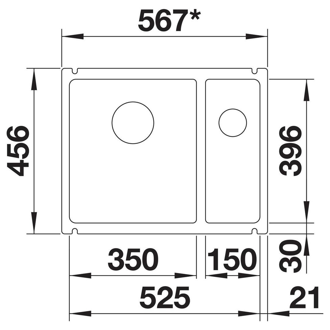 Blanco Becken Subline 350/150-U 56,7 x 45,6 cm, Keramik PuraPlus kristallweiß glänzend, Hauptbecken links, ohne Ablauffernbedienung BL523741