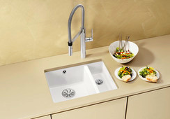 Blanco Becken Subline 350/150-U 56,7 x 45,6 cm, Keramik PuraPlus magnolia glänzend, Hauptbecken links, ohne Ablauffernbedienung BL523742