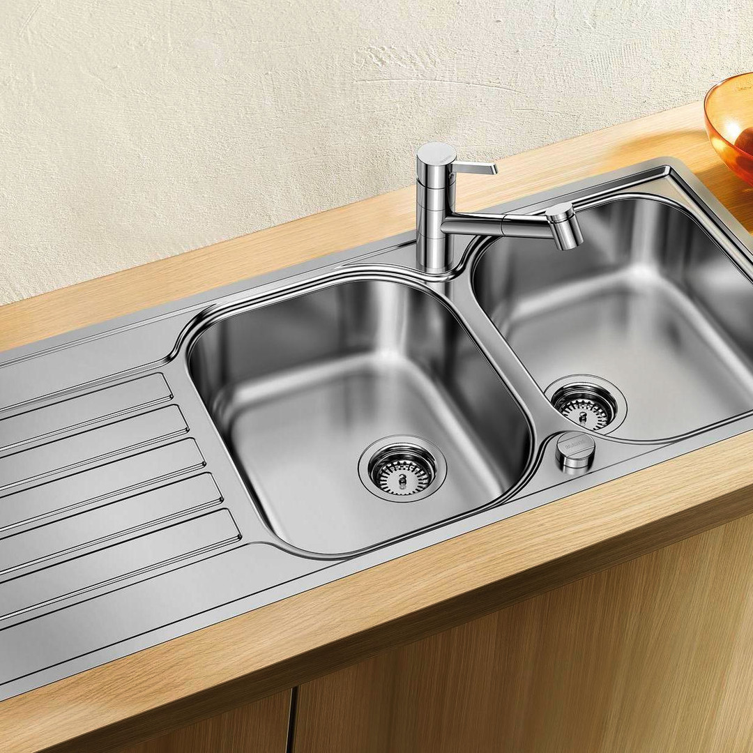 Blanco Spüle LANTOS 8 S-IF Compact 116 x 50 cm, Edelstahl Bürstfinish, reversibel, mit Ablauffernbedienung