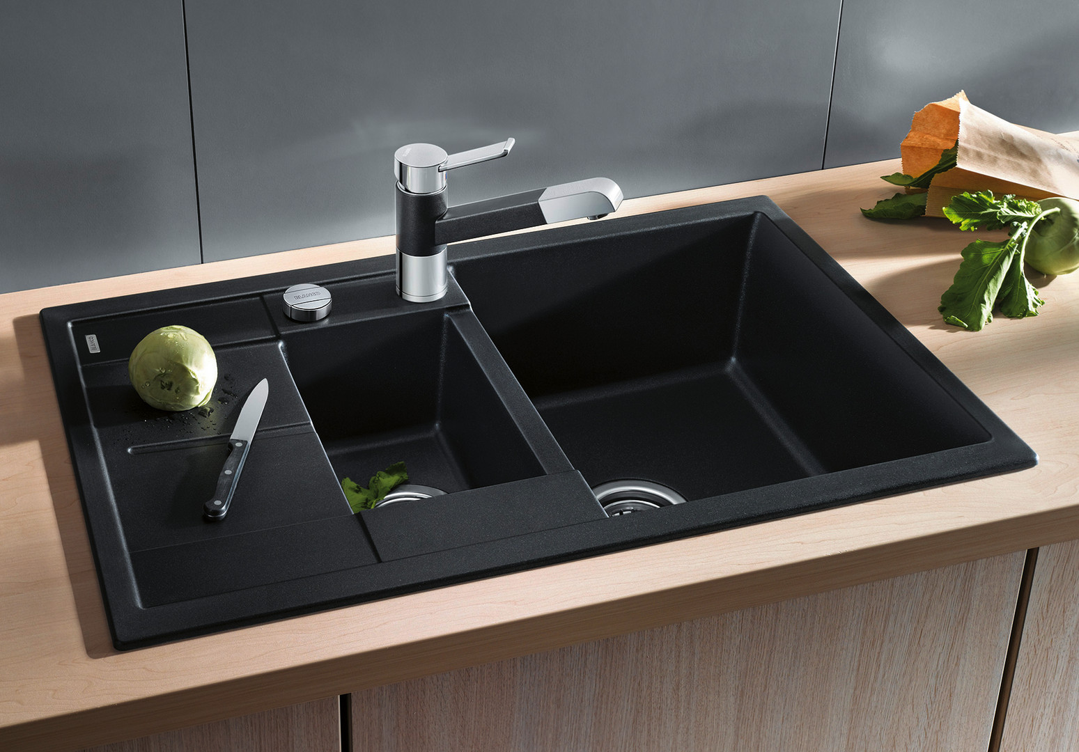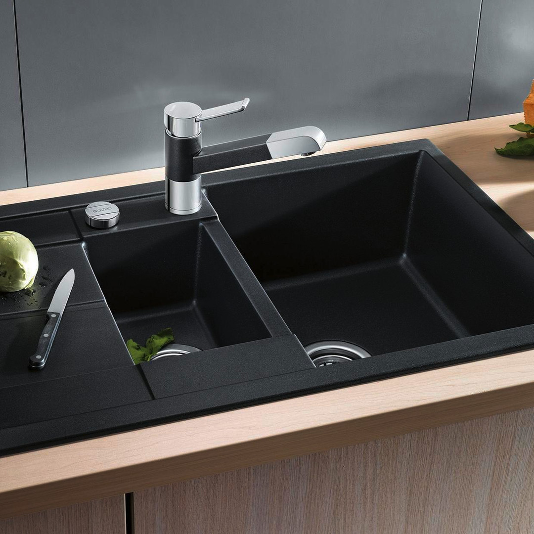 Blanco Spüle METRA 6 S Compact SILGRANIT 78 x 50 cm, schwarz, reversibel, mit Ablauffernbedienung BL525925