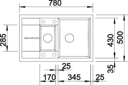 Blanco Spüle METRA 6 S Compact SILGRANIT 78 x 50 cm, PuraDur alumetallic, reversibel, Ablauffernbedienung mit Drehbetätigung BL513553