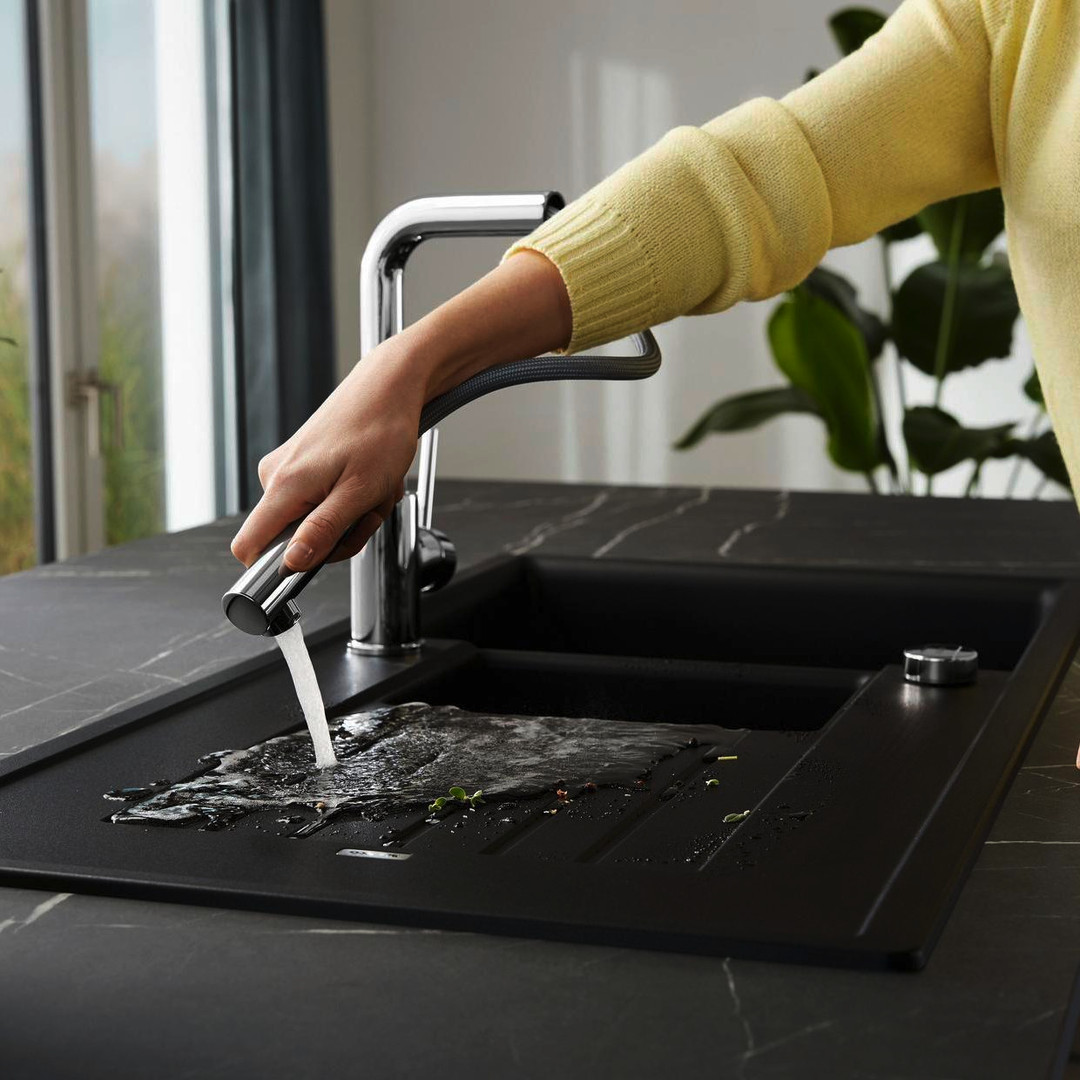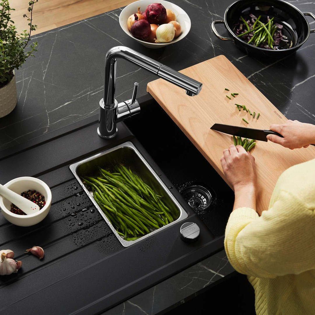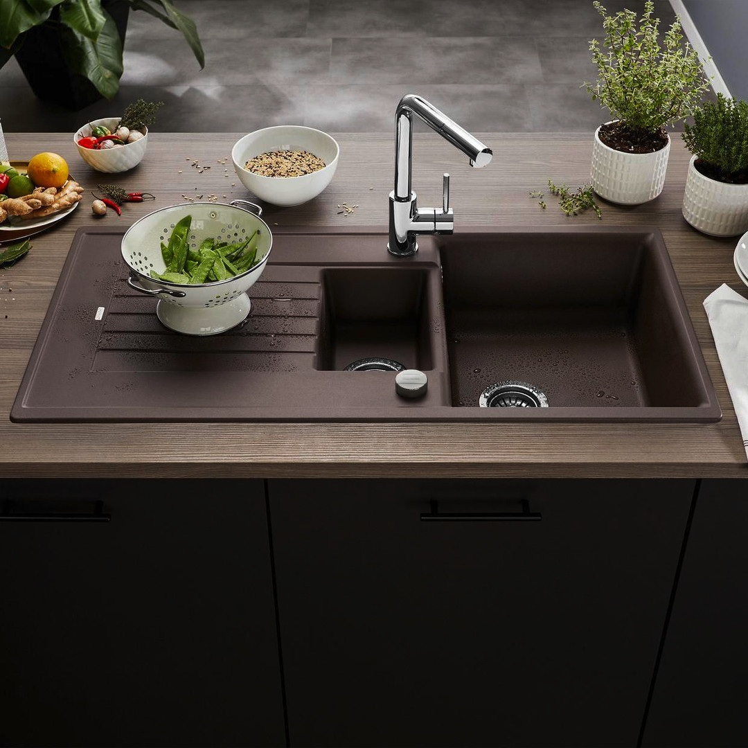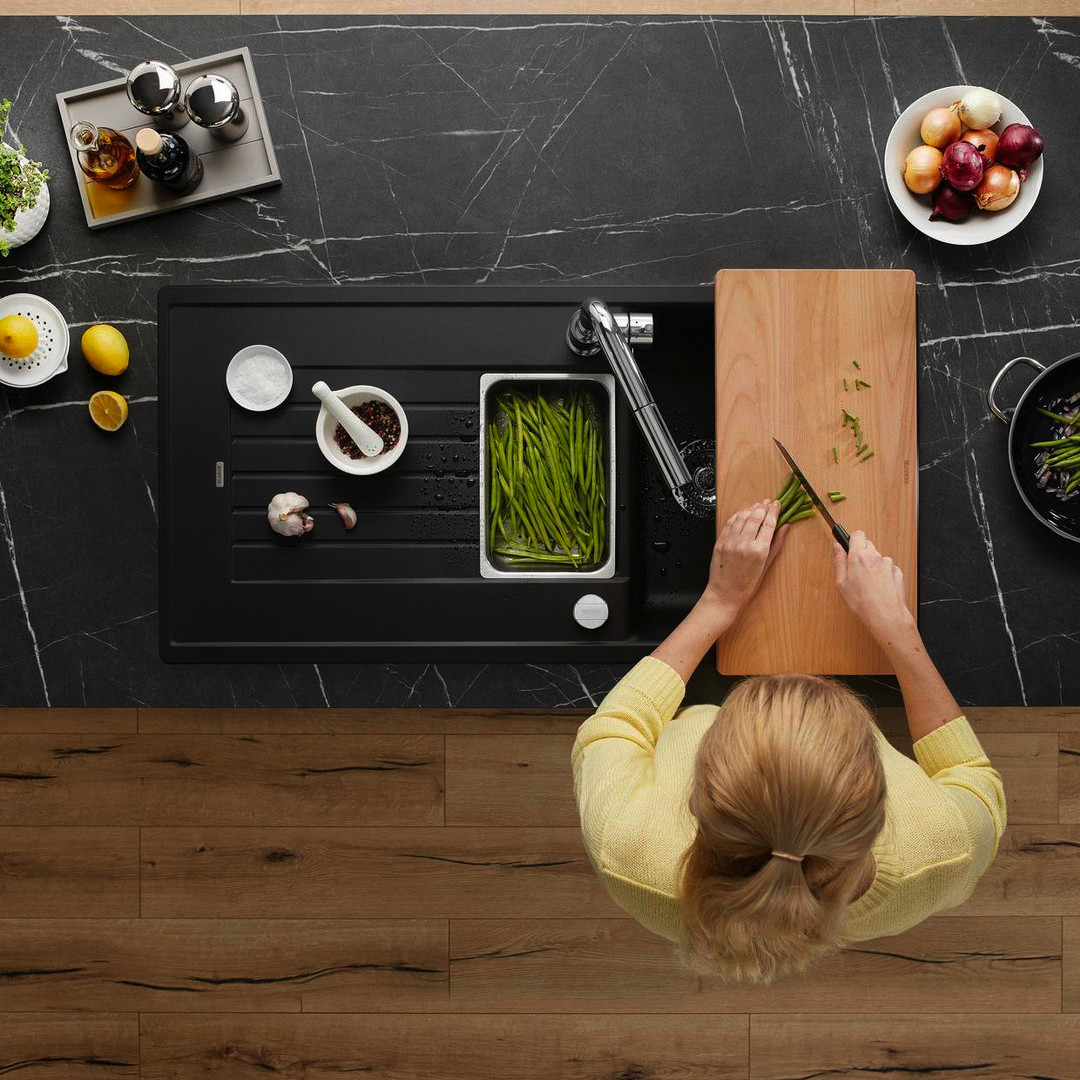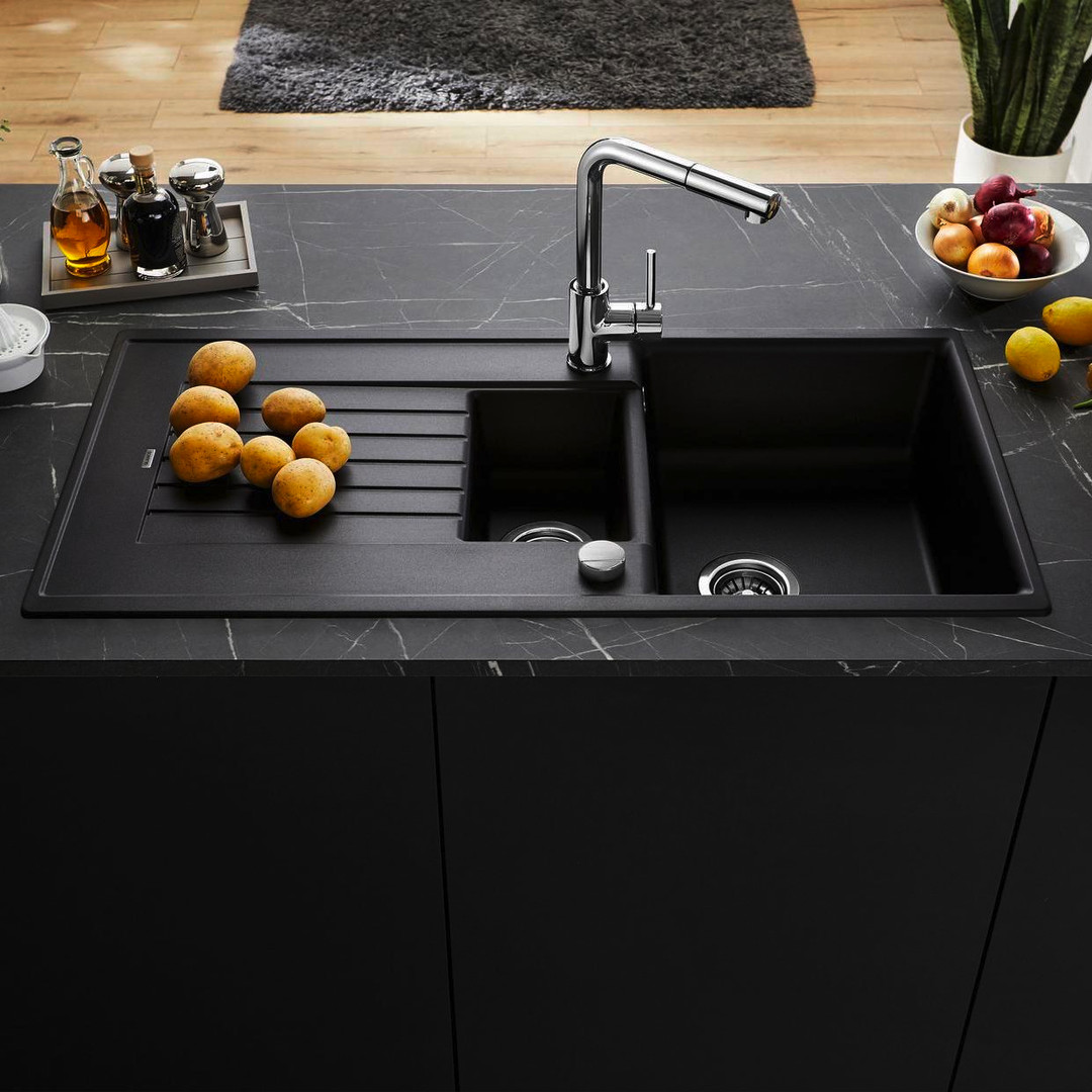 Blanco Spüle ZIA 6 S SILGRANIT 100 x 50 cm, schwarz, mit Ablauffernbedienung BL526020