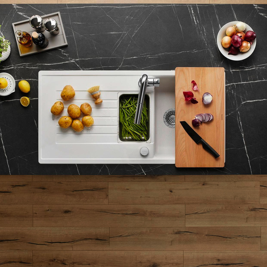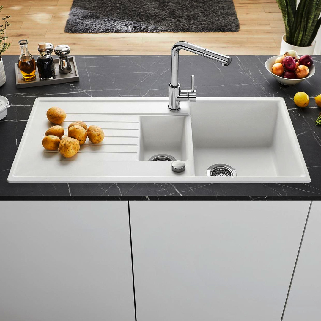Blanco Spüle ZIA 6 S SILGRANIT 100 x 50 cm, weiß, mit Ablauffernbedienung BL514734