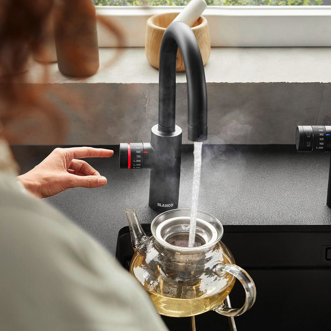 Blanco Spültisch-Einhebelmischer DRINK.HOT EVOL MONO HD, schwarz matt (Sonderfarbe)