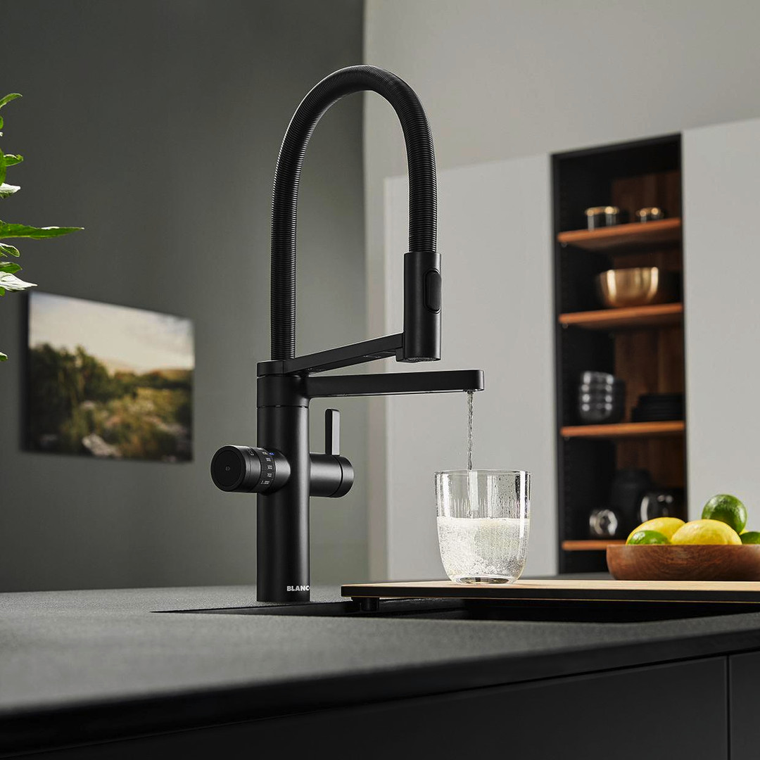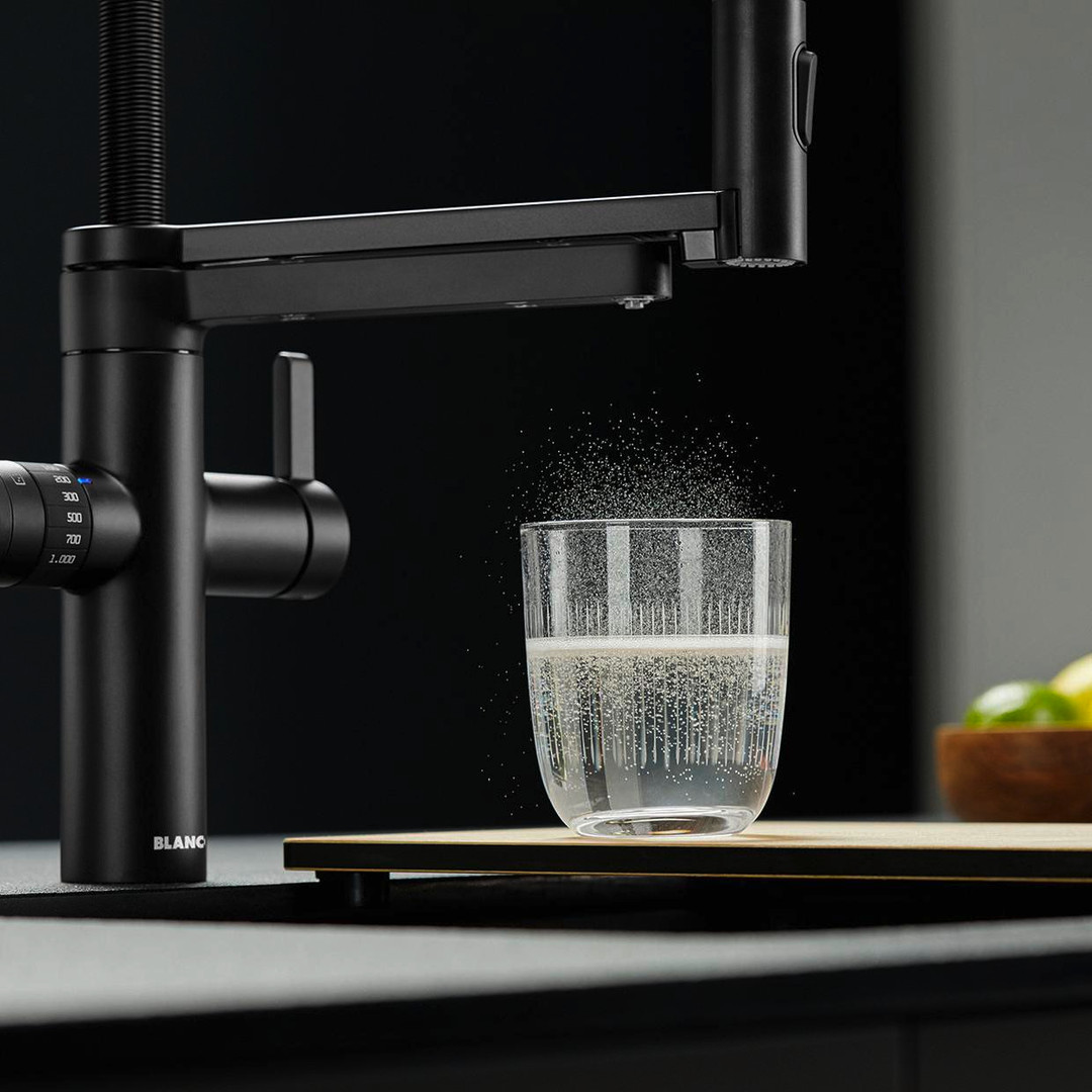 Blanco Spültisch-Einhebelmischer DRINK.SODA EVOL-S PRO HD, 5-in-1 Semi-Profi-Armatur, schwarz matt (Sonderfarbe)