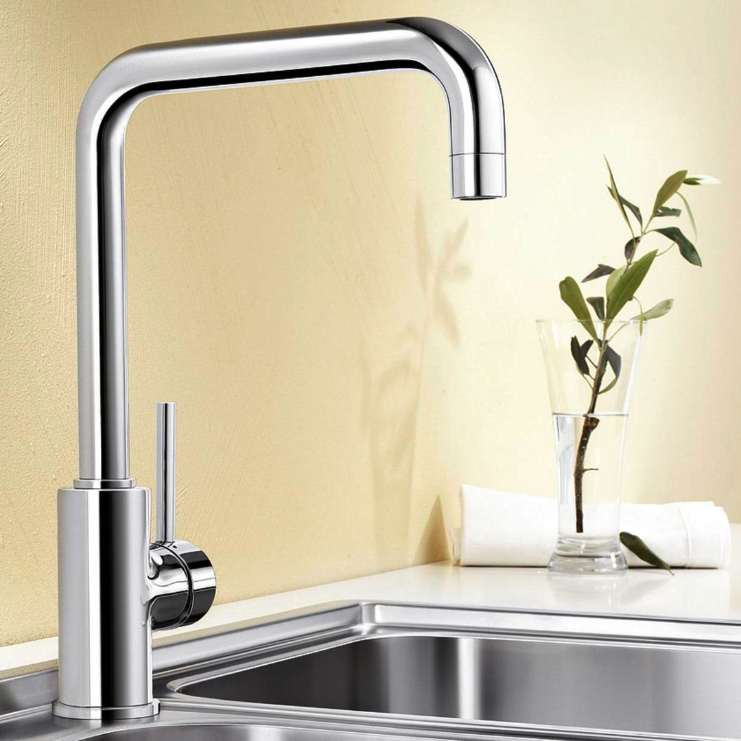 Blanco Spültisch-Einhebelmischer MILI HD, J-förmiger Auslauf, schwenkbar, chrom