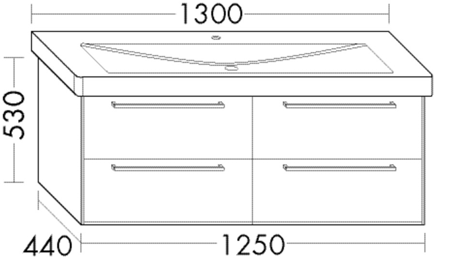 Burgbad Osera Waschtisch-Unterschrank 125x53x44cm, 2 Schubladen/2 Auszüge, Anthrazit Hochglanz 183286F1993