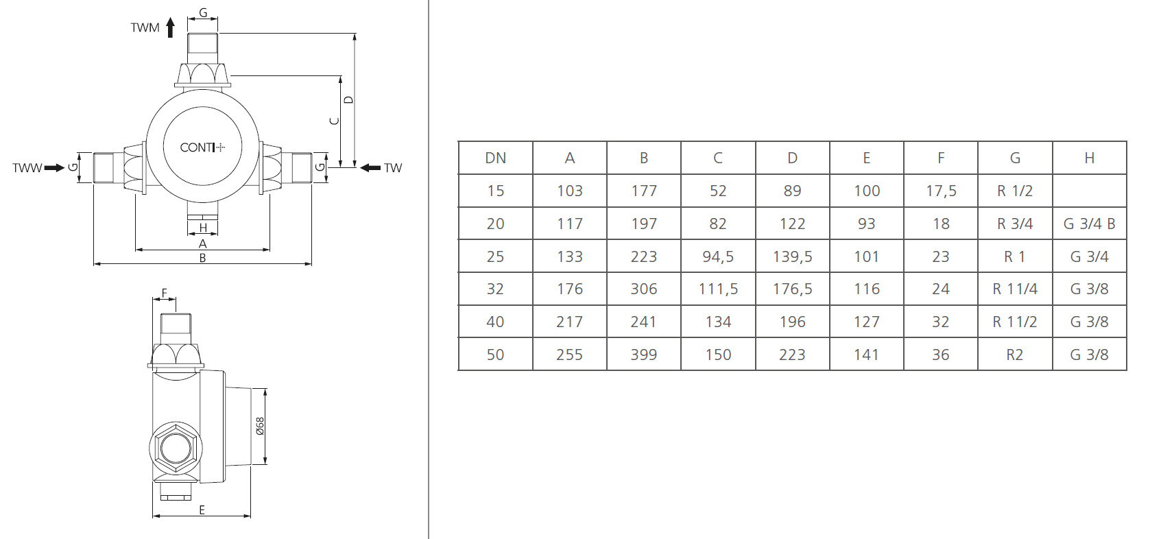CONTI+ AV-AnschlussVerschraubung mechanisch, 15 - 50 °C, DN15