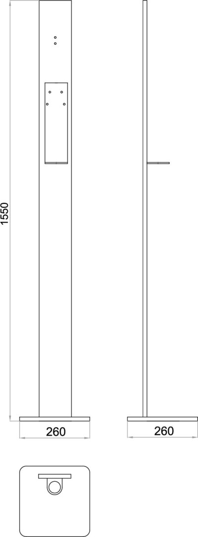 CONTI+ BJÖRK Bodenständer Edelstahl Pulverbeschichtet, mit Tropfschale, 155 hoch, für elektrische Spender, Mattschwarz Glanzgrad 10