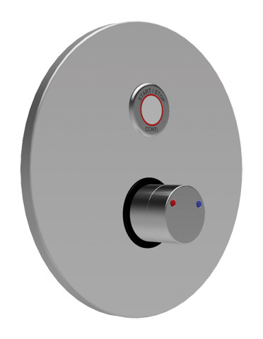 CONTI+ CONGENIAL Dusche Unterputz rund Edelstahl, elektrisch, Piezo-Taster, Netzbetrieb, Thermostat, Hygienespülung extern, DN15, FertigMontage-Set