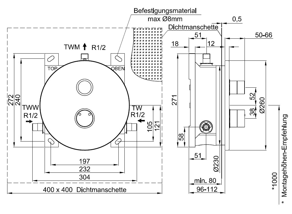 | Geeignet für Waschtische (Einbau in die Wand) | nein |