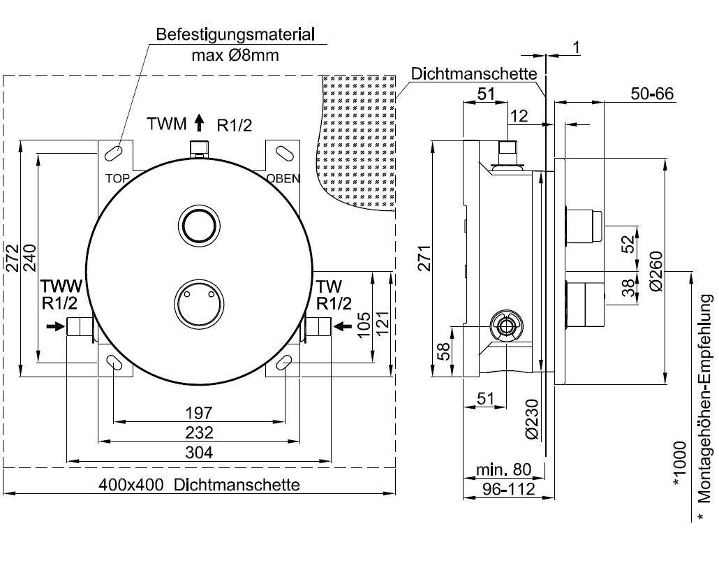| Geeignet für Waschtische (Einbau in die Wand) | nein |