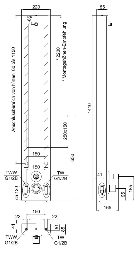 CONTI+ CONGENIAL Duschpaneel für Brausekopf AVW - AcrylVerbundWerkstoff, mechanisch, Ölhydraulik, Thermostat, Thermische Desinfektion (manuell), Weiß, DN15