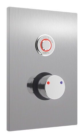 CONTI+ CONGENIAL FIT Dusche Unterputz eckig Edelstahl, elektrisch, Piezo-Taster, Netzbetrieb, Thermostat, DN15, FertigMontage-Set